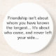it is what it says: Friendship isn't about whom you have known the longest... It's about who came, and never left your side...