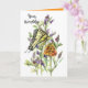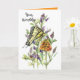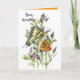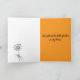 "Your friendship has planted a garden in my heart" greeting card for a sweet sentiment for a special friend decorated with a tiger swallowtail visiting an orange zinnia garden flower with ladybugs on the purple wildflowers hand drawn with ink and painted with watercolor. On the inside is a shade of bright orange and another zinnia flower with text you can edit to fit your needs.