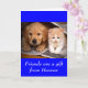 greeting card, friendship card, golden retriever, retriever, orange tabby, kitten, cat, dog, puppy, puppies, friends, golden retriever pup, orange tabby,