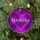Celebrate the beauty of friendship with this vibrant purple heart ornament. Featuring a glowing heart design and the word “Friendship” in a playful handwritten style, this piece is a meaningful reminder of connection, love, and lasting bonds.