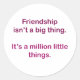Friendship isn't a big thing. classic round sticker