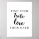 Friendship quote typography poster: "Find your tribe. Love them hard." calligraphy hand lettering