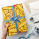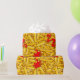 Hilarious cartoon wrapping paper patterned with French fries splattered with red ketchup.