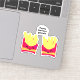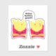Two cartoon fries containers are smiling, with one of them saying, "Fries before guys!!". The colourful and playful design adds a humourous and light-hearted message.