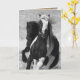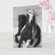 A Friesian stallion and a Gypsy Vanner stallion run together in a pasture in California. There is an additional image of the Gypsy inside the card. Both images are by Carol Walker.