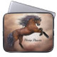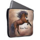 Friesian brown horse rearing up with misty clouds laptop sleeve