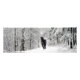 Beautiful friesian horse walking in a snow forest! Peaceful, mystic and calm!