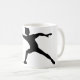 Playing frisbee is a lot of fun. Young and old can participate. You can also do frisbee throwing competitively. This design showcases a frisbees thrower in the action of throwing and is done in a silhouette style. This frisbee design looks great on this mug. Perfect for yourself or as a gift