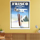 Frisco Colorado USA travel poster of a vintage old prop plane flying low over mountains.
