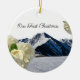 Sharing your first Christmas with someone is so special. Here is a beautiful scenic snowy mountain landscape with white flowers accenting it. Customise as desired.