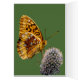 A beautiful butterfly has landed on a blue thistle flower in the midst of a summer garden.