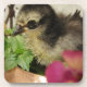 All rights reserved © Angelandspot an adorable little frizzle chick sits in a copper tea kettle planted with pansy flowers