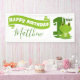 This is a funny and cute birthday party banner inspired by frogs. The template is ready to use add the name and that's all. This birthday party banner is unique and perfect for a frog theme party. Customise yours now!