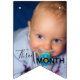 This is a funny and cute birthday party bunting flags inspired by frogs. The template is ready to use add your own photos you have space for thirteen different photos. Let's celebrate the baby's 1st birthday! This birthday party bunting flag is unique and perfect for a frog theme party. Customise yours now!