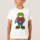 The t-shirt feels and looks great quality, a good thick cotton. It will be a little big for my son, but that means he will be able to wear it and not out grow it too soon. The print was as described on the order when personalised. True size, shape and colour T-shirt- thanks.