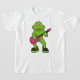 The t-shirt feels and looks great quality, a good thick cotton. It will be a little big for my son, but that means he will be able to wear it and not out grow it too soon. The print was as described on the order when personalised. True size, shape and colour T-shirt- thanks.