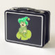 This is a standard metal lunchbox that appears to work just fine. We designed this box ourselves with an uploaded photo and custom text on the front and back. It looks absolutely beautiful except the front of the lunchbox is not centered like it shows in the photo. The print borders don't align with the inset flat part of the box where the preview photo online showed it perfectly centered in there. The back looks nice and centered though.