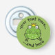 Green frog cartoon with golden crown. Prince frog. Custom background colour. Two custom text fields on circle.
