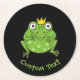 Green frog cartoon with golden crown. Prince frog. Custom background colour. Custom text.
