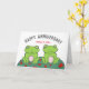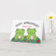 Personalized frogs on a lilypad with red hearts wedding anniversary card.