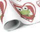 A cute Valentine Day design featuring a frog cupid on a big red heart on Valentines Day gift wrapping paper.