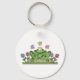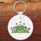 A cute froggy keychain featuring an adorable green frog in a flower garden!