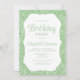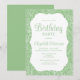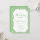 This feminine and sweet design features a white shape frame on a frog green floral pattern.