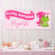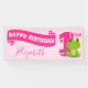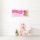 Frog Happy Birthday One year old girl cute pink Banner. This is a funny and cute birthday party banner inspired by frogs. The template is ready to use add the name and that's all. This birthday party banner is unique and perfect for a frog theme party. Customise yours now!