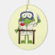 A green frog with safety goggles and a white lab coat does some experimenting in the lab on Frog in the Lab T-shirts, mugs, cards, stickers, tote bags, keychains, magnets, ornaments, and other science theme apparel and gifts.