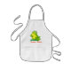 A kids' white apron with a cute, green frog and 'gribbet, gribbet...' in red lettering.