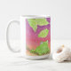 frog mug green tree frog on a pink sunset sky background. Watercolor art by artist Sandy Closs ~ SandyCloss~