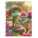 Cute whimsical green frog paddling a flip-flop in a pond with pink waterlilies