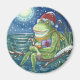 FROG ON A LOG, HOLIDAY CHRISTMAS MAGNET Round