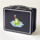 This is a standard metal lunchbox that appears to work just fine. We designed this box ourselves with an uploaded photo and custom text on the front and back. It looks absolutely beautiful except the front of the lunchbox is not centered like it shows in the photo. The print borders don't align with the inset flat part of the box where the preview photo online showed it perfectly centered in there. The back looks nice and centered though.