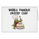 An adorable frog in a chef's hat and cake on World Famous Pastry Chef T-shirts, mugs, aprons, cards, stickers, tote bags, and other items that make great gifts for pastry chefs or anyone who loves baking!