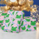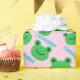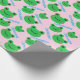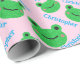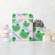 Green Smiling Frog Pattern Pink Sweet Life Wrapping Paper. This wrapping paper is cute and customisable with kid first name.