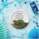 Create your own personalised party supplies when you add your own message to these paper plates that feature a photo of a frog sitting on a moss-covered rock. These plates are perfect for throwing parties for fans of frogs and other amphibians. The realistic photo illustration is perfect for science and nature lovers.