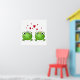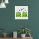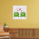 A couple of cute green frogs with red hearts. This prince frog and princess frog are on a plain white background.
