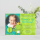 Your little froggie will love this fun invitation in shades of blues green and turquoise and complete with a cute cartoon frog prince.