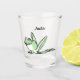 A colour pencil drawing of a happy little frog adorns this customisable shot glass!