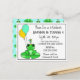 Birthday invitations with a cute frog sitting on a lily pad with a birthday hat and balloons. Cute for a little boy's birthday party.