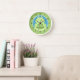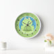 This clock features our super cute green frog with a blue background, green border, and black numbers. This would look super cute in a baby nursery, child's room, playroom, or personalised for a unique classroom teacher gift. Add a name, if desired. © Art by Jess