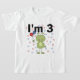 An adorable 3rd birthday design on 3rd birthday T-shirts, cards, stickers, magnets, tote bags, and more featuring a green frog with birthday balloons and text that reads "I'm 3".