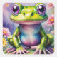Frog With Flower Digital Art Square Sticker