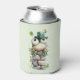Can cooler with a cute St. Patrick's Day image. A green frog with big cartoon eyes sitting on a stone wall. Wearing a green top hat with a shamrock and a little friend sitting on top of his hat.