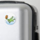 This design shows a frog leaping into a pond. The frog is ready with summer and is holding a sun hat!