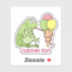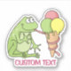Smiling frog steals an ice-cream cone with his tongue. Custom Text.