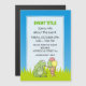 Smiling frog steals an ice-cream cone with his tongue over green grass under blue sky.
