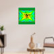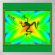 Green tree frog on psychedelic background with dragonfly.
