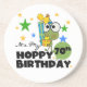 An oh so cute 70th birthday design featuring a green frog with eye glasses surrounded by gifts,balloons, and stars with text that reads "It's My Hoppy 70th Birthday!'. 70th birthday T-shirts, buttons, magnets, cards, keepsakes, bags, mugs, and other items that make great gifts for anyone turning seventy!